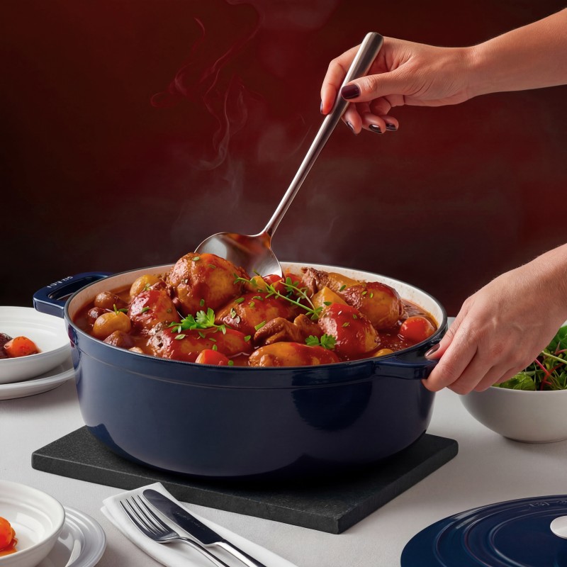 Rendete ancora più speciali le vostre tavolate con la casseruola in ghisa smaltata ALMA36. Pensata per i momenti di condivisione, è l’alleata ideale per cucinare in grandi quantità preservando la qualità della cottura. La ghisa garantisce una diffusione omogenea e duratura del calore, perfetta per tagli di carne interi, pollame arrosto o generosi piatti stufati.
